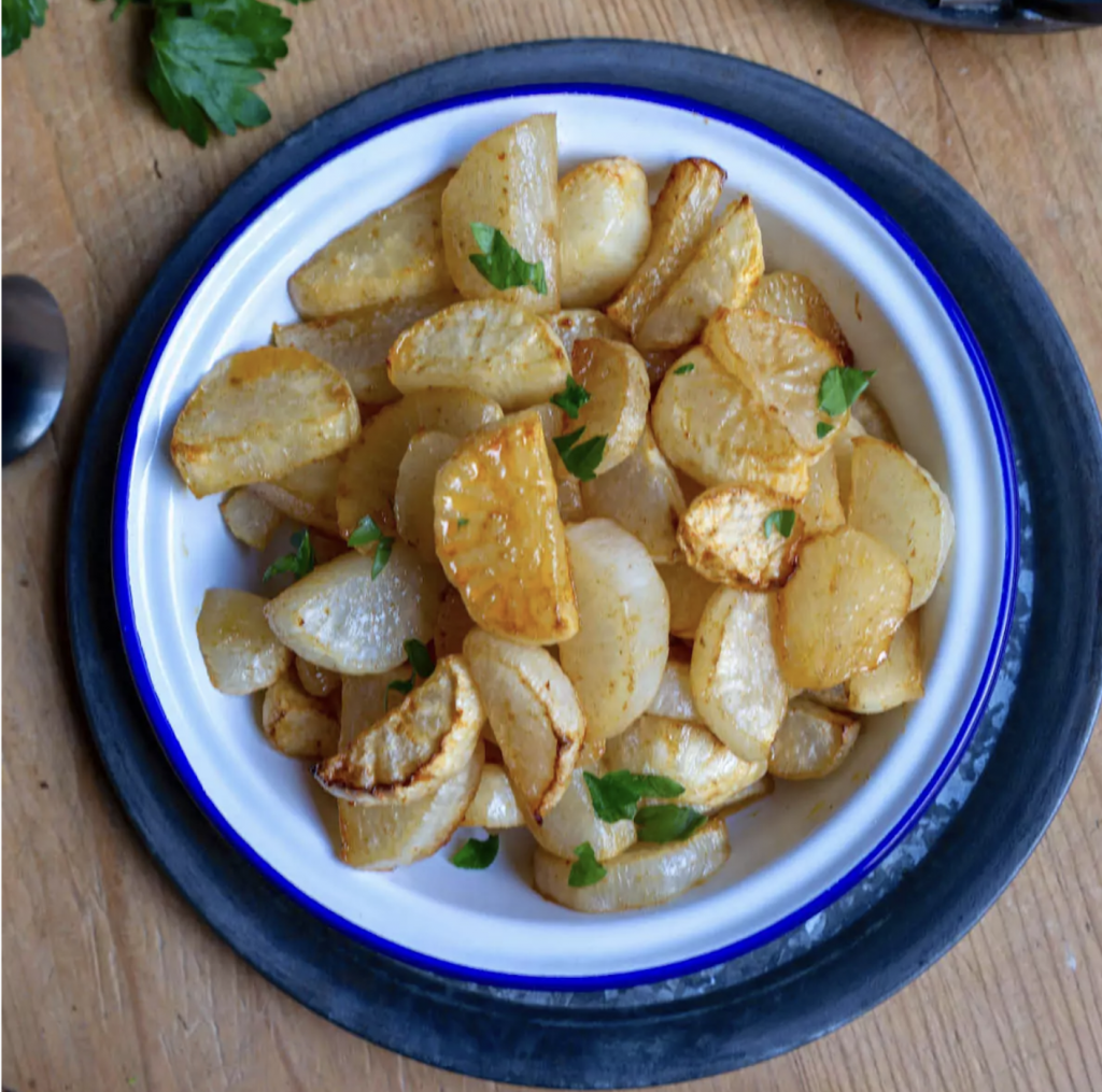 Ces petits navets rôtis au four sont tendres et savoureux, offrant une belle couleur dorée et une texture fondante. Un plat d'accompagnement qui séduira vos convives à coup sûr !
